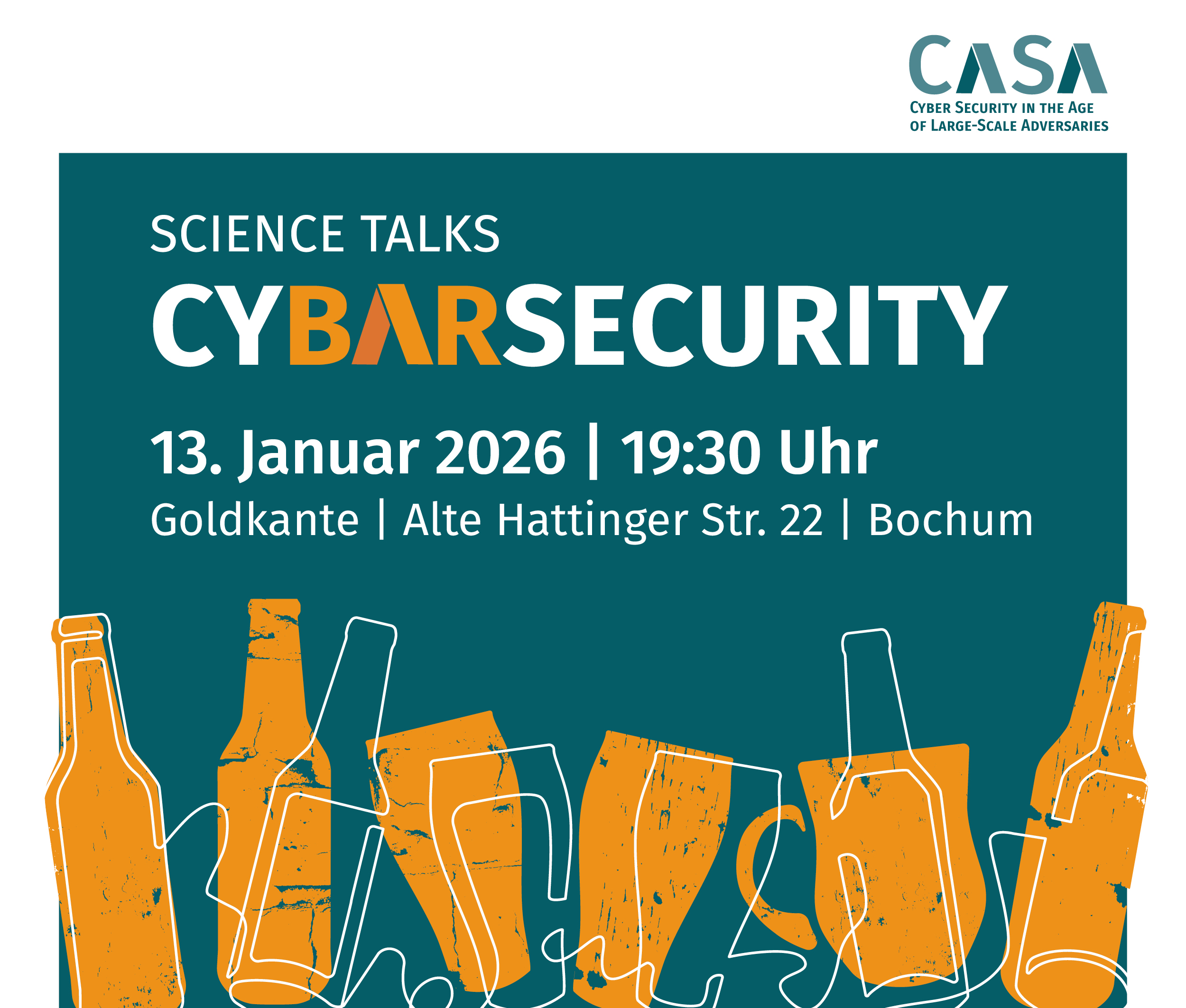 Bei der vierten Ausgabe der Veranstaltungsreihe ist CyBARsecurity zu Gast in der Goldkante decken Cybersicherheitsexpert*innen des Exzellenclusters CASA am Horst-Görtz-Institut für IT-Sicherheit und dem Max-Planck-Institut für Sicherheit und Privatsphäre (MPI-SP) für euch die unsichtbaren Gefahren des Internets auf – für Laien verständlich und in lockerer Baratmosphäre.